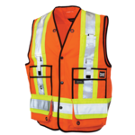 Equip yourself with the ultimate work vest designed for site managers, featuring a plethora of functional pockets, including one large enough for a tablet. Crafted from durable polyester twill, this vest ensures visibility with 3M™ Scotchlite™ 2″ reflective material and a snap front closure for easy wear. It includes an upper chest patch pocket with security tabs, 2 lower double patch pockets with bellows and security tabs, and a large rear zippered pouch pocket for ample storage. Additional features like a safety harness opening at the center back, adjustable side snaps for seasonal fit adjustment, mesh side vents, grommets for tape feed and hooks, and inside pockets enhance versatility and convenience.